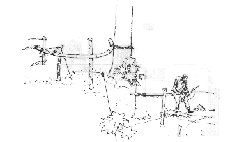bottom of the bamboo, which rested on a solid board. When a man trod on the